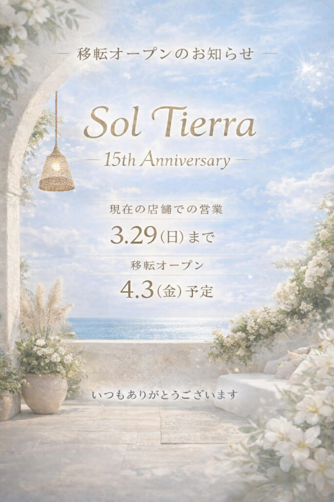 いつもソルティエラをご利用いただき本当にありがとうございます。おかげさまでSol Tierraはこの4月で15年目を迎えます。